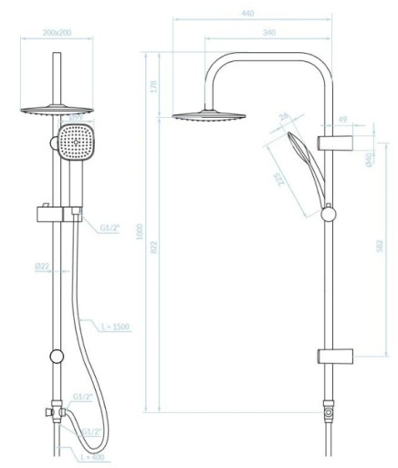 Wąż: 150 cm i 50 cm (stalowy oplot)