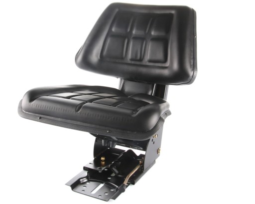 Siedzenie do ciągnika, wózka widłowego amortyzowane mechanicznie bez podłokietników. Siedzenie nadaje się szczególnie do ciągników, maszyn rolniczych, wózków widłowych oraz maszyn budowlanych. Posiada regulowane ustawienie poziomu amortyzacji w zależności od wagi operatora. Dzięki dźwigni mamy możliwość regulacji przesuwu fotela w przód i do tyłu.Obicie wykonane jest z czarnego tworzywa sztucznego, wytrzymałego i łatwego w utrzymaniu czystości. Liczne otwory montażowe w płycie pozwalają na łatwy i skuteczny montaż w podłodze maszyny. Dodatkowym atutem jest możliwość regulacji kata nachylenia oparcia.