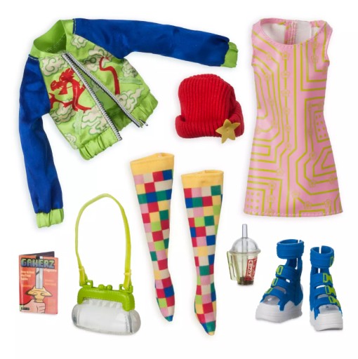Wyobraź sobie scenariusze, jakie Twoje dziecko może wymyślić dla swojej ulubionej lalki – i dla siebie – dzięki temu fajnemu i kolorowemu zestawowi mody Disney ily 4EVER inspirowanemu Mulan. Dziesięcioczęściowy zestaw zawiera sukienkę, czapkę, niesamowite buty, skarpetki w tęczową kratę, torebkę i kurtkę z motywami inspirowanymi Mulan z Disneya.