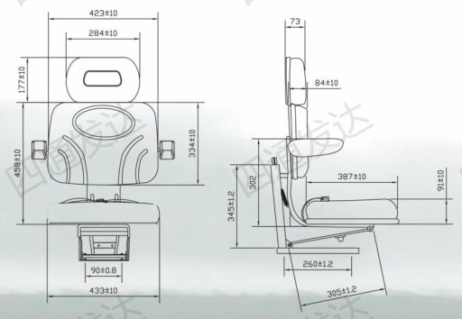 Siedzenie do ciągnika, wózka widłowego amortyzowane mechanicznie z podłokietnikami i zagłówkiem. Siedzenie nadaje się szczególnie do ciągników, maszyn rolniczych, wózków widłowych oraz maszyn budowlanych. Posiada regulowane ustawienie poziomu amortyzacji w zależności od wagi operatora. Dzięki dźwigni mamy możliwość regulacji przesuwu fotela w przód i do tyłu. Obicie wykonane jest z czarnego tworzywa sztucznego, wytrzymałego i łatwego w utrzymaniu czystości a siedzisko i oparcie z grubej i komfortowej gąbki. Liczne otwory montażowe w płycie pozwalają na łatwy i skuteczny montaż w podłodze maszyny. Dodatkowym atutem są podnoszone podłokietniki zwiększające komfort dla operatora oraz regulowany zagłówek zwiększający bezpieczeństwo.