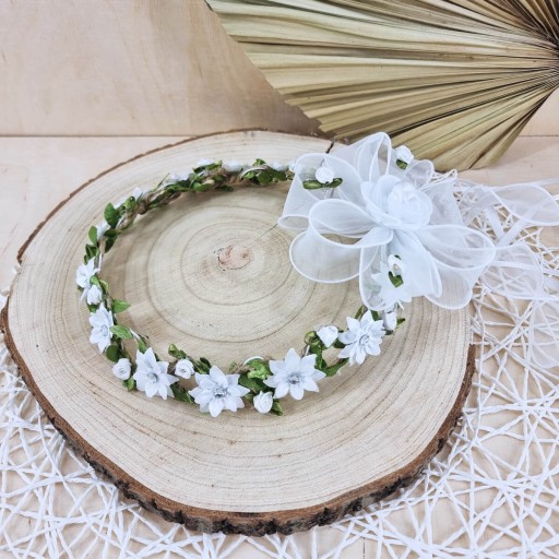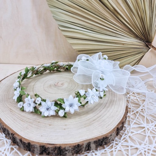 Przepiękny wianek komunijny z białymi kwiatkami margaretka ręcznie robiony z regulacją na główce