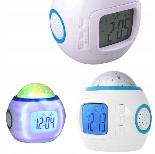 ✅ Zegar z budzikiem wyświetlający w pokoju kolorową projekcję rozgwieżdżonego nieba, która zmienia się w rytm odgrywanej melodii.