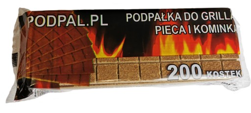 Rozpałka do grilla 5 tabliczek (200 kostek) - Podpałka pozwala w krótką chwilę na rozpalenie ognia. Przyda się do rozpalenia grilla czy ogniska, możemy go też użyć jako podpałki do kominka.