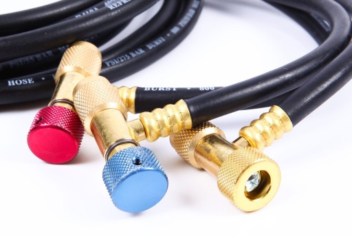 Węże ciśnieniowe wyposażone są w zaworki z ruchomym popychaczem, który skutecznie otwiera zaworek serwisowy. Dzięki temu rozwiązaniu minimalizuje się ryzyko wycieku czynnika chłodniczego z instalacji oraz ogranicza możliwość bezpośredniego kontaktu serwisanta z czynnikiem chłodniczym, co wpływa znacząco na zwiększenie bezpieczeństwa pracy.