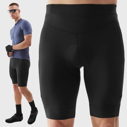 4F ВЕЛОСИПЕДНЫЕ ШОРТЫ МУЖСКИЕ С ГЕЛЕВОЙ ПОДКЛАДКОЙ, ЧЕРНЫЕ, фильтр UPF 50, SS24