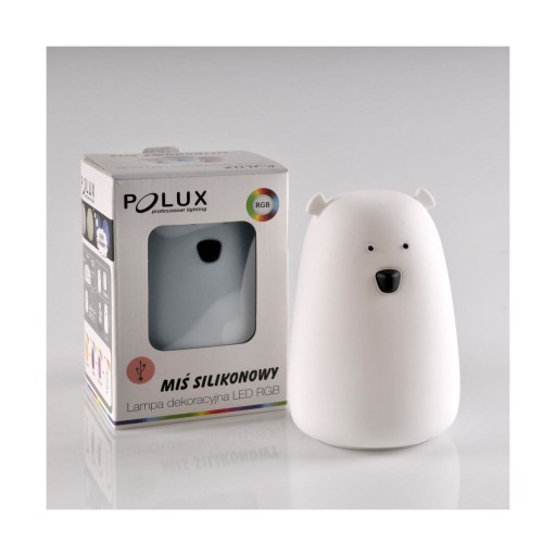 Śliczna i funkcjonalna ledowa lampka nocna w kształcie misia dostępna w kolorze - białym.