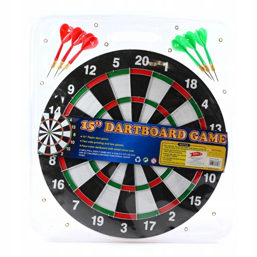 Ten zestaw to gwarancja świetnej zabawy podczas spotkań z rodziną i przyjaciółmi, idealnie sprawdzająca się na domówkach, piknikach czy podczas urlopowego relaksu. Dzięki średnicy tarczy wynoszącej 37cm oraz wykonaniu z wzmacnianej tektury, masz pewność trwałości i stabilności podczas gry. Rzutki ze stalowym grotem zapewniają precyzję i wygodę w rzucaniu.
