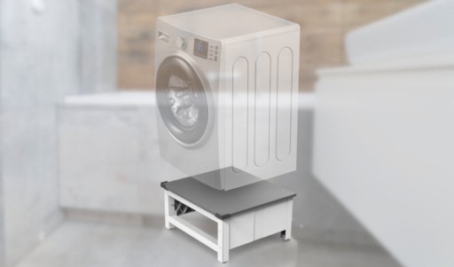 Podstawa MELICONI Base Space Bridge, pozwalająca podnieść pralkę o 31 cm. Takie rozwiązanie to znaczna ulga dla kręgosłupa podczas wkładania czy wyjmowania prania. Do tego bez problemu odkurzysz i umyjesz podłogę pod pralką.