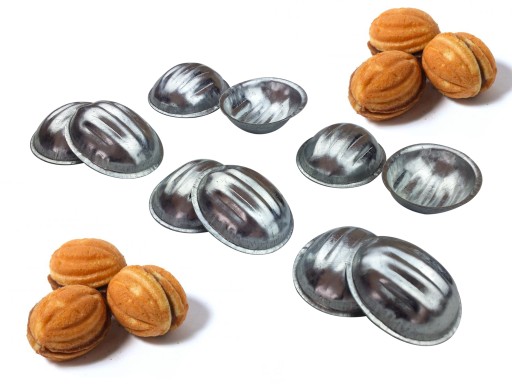 Zestaw składa się z 10 foremek (połówek) do wypiekania wspaniałych i smacznych orzeszków w piekarniku.
