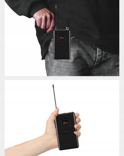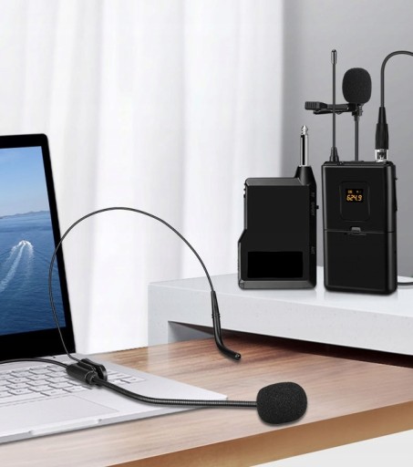 - Kompletny zestaw – mikrofon nagłowny, krawatowy oraz odbiornik i nadajnik
