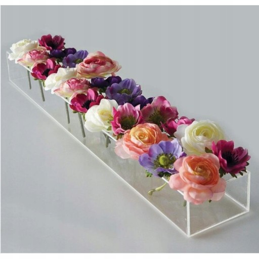 Elegancka dekoracja: Przezroczysty akrylowy prostokątny wazon na kwiaty ma współczesny design i wystrój, jest elegancką i przyciągającą wzrok dekoracją wewnętrzną lub zewnętrzną, która może być używana jako idealny środek stołu do kuchni, salonów, restauracji, biur, przyjęć, wesel, stołów jadalnych i innych , pasujące do różnych kolorów kwiatów, dzięki czemu bankiet i impreza wyglądają atrakcyjniej.