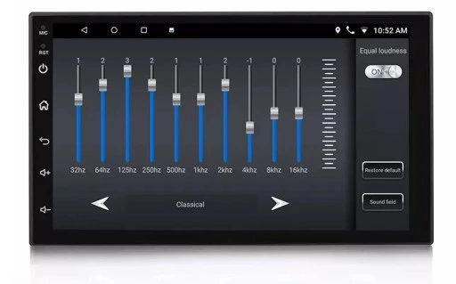 - Posiada rozbudowany 32 pasmowy Equalizer z zakresami: ultra bass, bass, medium bass, mediant, middle treble, treble i ultra treble. Uwaga! Equalizer działa w pełnym zakresie niezależnie od trybu pracy (Bluetooth, Pendrive USB, Radio FM, itd.). Na rynku występują tanie modele, które w trybie radia FM oferują wyłącznie dwu pasmową regulację jedynie skrajnych wartości barwy dźwięku Equalizera.