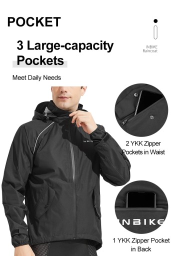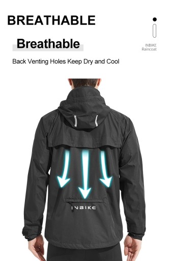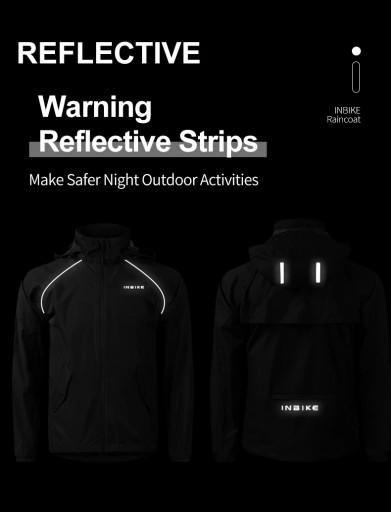 【Reflective Design】The logo and stripes on the front and back of this INBIKE cycling Rain Jacket is high visibility in low light conditions,which makes the jacket reflective at night and provides more safety outsides.