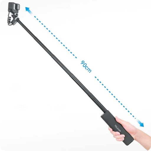 Rączka umożliwia bardziej stabilne nagrywanie niż poprzez trzymanie kamery czy telefonu w dłoniach. Końcówka z uniwersalnym mocowaniem świetnie sprawdzi się do większości kamer, aparatów, gimbali, uchwytów na telefon.