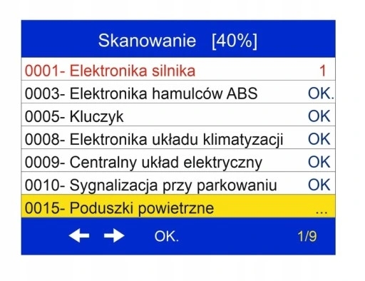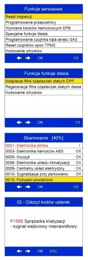 - odczyt błędów: P0, P2, P3, U0, oraz kody charakterystyczne danej marki: P1, P3, U1
