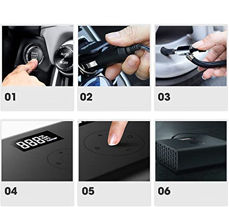 - Cyfrowy wyświetlacz i oświetlenie LED: Przenośna sprężarka powietrza Carsun jest wyposażona w wyświetlacz o wysokiej rozdzielczości, który pozwala na precyzyjną regulację ciśnienia w oponach w 4 jednostkach (psi, bar, kPa, kg/cm²). Cyfrowy pompka do opon pomaga sprawdzić ciśnienie w oponach i zaprogramować wartości ciśnienia w oponach. Jest wyposażony w trwałe, jasne światła LED, które można z łatwością używać nawet w ciemności.