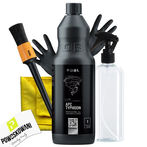 ADBL APC TYPHOON to skoncentrowany, bardzo silny, uniwersalny produkt do usuwania najcięższych zabrudzeń z plastiku, winylu oraz tapicerki materiałowej.