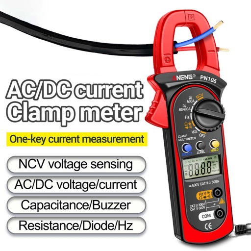 [Wielofunkcyjny] Multimetr cyfrowy cęgowy, zaprojektowany i wyprodukowany zgodnie z międzynarodowymi normami bezpieczeństwa elektrycznego, służący do pomiaru napięcia stałego, prądu stałego, rezystancji, częstotliwości Hz, wykrywania baterii i innych.