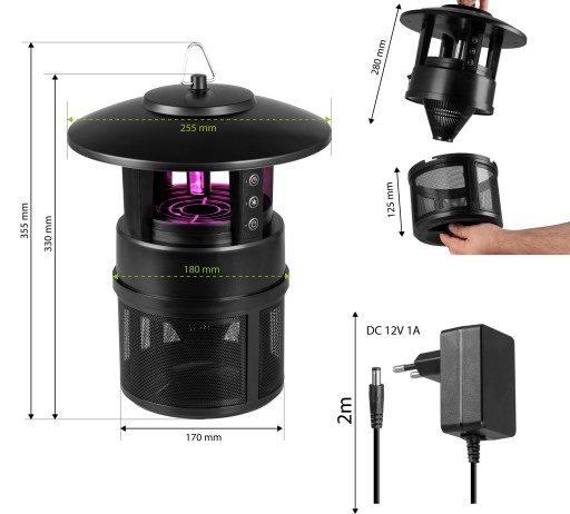 ⭐Wyposażona w światło wabiące uv (SMD2835x9) generujące długość fali światła 395nm, dodatkowo wbudowany wentylator zasysa zwabione owady do pojemnika lampy, dzięki temu lampa jest bardzo cicha. Działa skutecznie na obszarze do 60 m2, eliminując uciążliwe owady w promieniu kilku metrów od lampy.