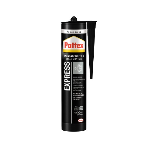 Praktyczny zakres dostawy - Pattex Montage Express, do szlifowania i malowania ***** po związaniu, do użytku wewnątrz i na zewnątrz****, z mocną technologią polimerową FlexTec, biały, wkład 1x440 g