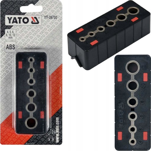 - 5 otworów wyposażonych w prowadnice ze stali węglowej dla wierteł o średnicy 4, 5, 6, 8, 10 i 12 mm.