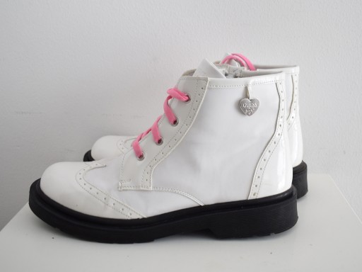 Guess typu combat kozaki białe lakierowane 38