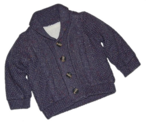 Fajny sweterek dla chłopczyka, wewnątrz na misiu, zapinany na guziki, wywijany kołnierz, granatowy
