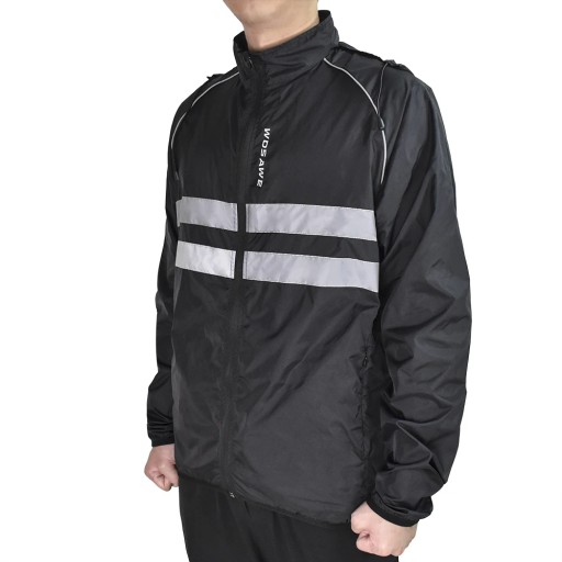 This packable jacket keeps some of the wind off but allows enough air permeability to keep you well ventilated and dry; It helps keep out splashes and light rain, suitable for riding in mist or fog; 4cm Width reflective strips offer safe cycling& jogging at night.