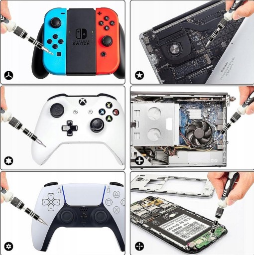 - 21 x bitów Torx (sześcioramienna gwiazda) : 2x T1, 2x T2, 1x T3, 1x T4, 1x T5, 2x T6, 2x T7, 2x T8, 2x T9, 2x T10, 2x T15, 2x T20