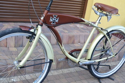 Rower w dobrym stanie wizualnym widoczne normalne ślady użytkowania, miejscami ślady korozji, technicznie rower sprawny, gotowy do jazdy.