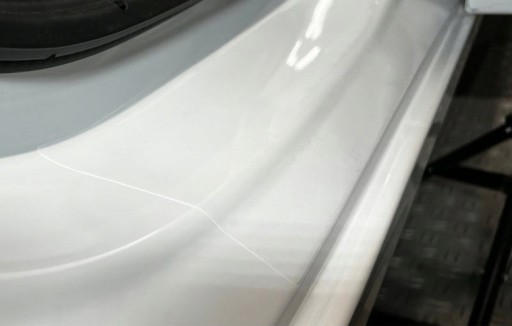 Folia po aplikacji staję się praktycznie niewidoczna. Pozostaje widoczny tylko rant, który wynika z grubości materiału (190 mikronów).