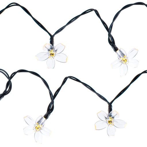 LAMPKI OGRODOWE SOLARNE KWIATKI 7M 50 LED CIEPŁY BIAŁY