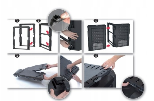 Kompostownik wyposażony jest w kilka drzwiczek ułatwiających wybieranie powstałej próchnicy.