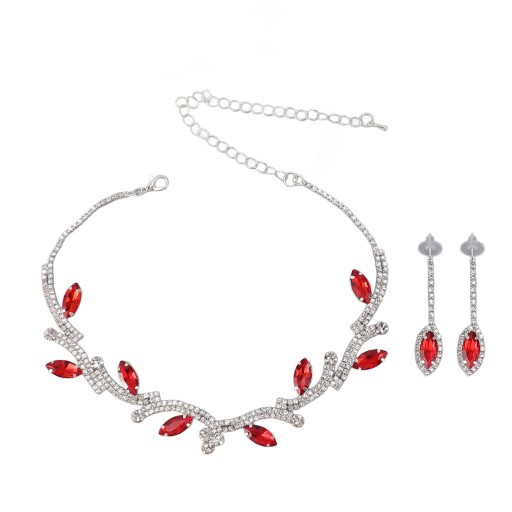 Naszyjnik damski zestaw kolczyków liście strasu zestaw biżuterii ślubnej panny młodej na przyjęcie urodzinowe