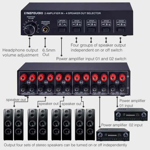 Czy masz problem z podłączeniem dwóch zasilaczy do czterech zestawów głośników? Czy potrzebujesz wzmacniacza mocy, aby wszystkie cztery głośniki brzmiały w tym samym czasie Potężny wzmacniacz mocy z przełącznikiem dźwięku może rozwiązać powyższe problemy.