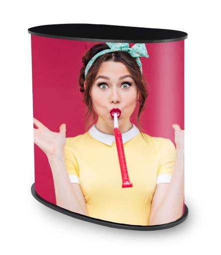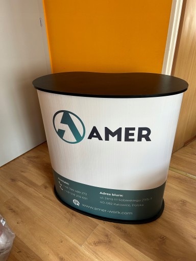 Mechanim zapewnia błyskawiczne rozłożenie konstrukcji, bez użycia narzędzi. Dobrej jakości, metalowe elementy wraz z lakierowaną ladą gwarantują solidne wykonanie i długi czas użytkowania produktu. Bryt montuje się przy pomocy magnesów, dzięki czemu montaż grafiki zajmuje dosłownie kilka sekund. Niewielkie rozmiary po złożeniu trybunki ułatwiają przechowywanie i transport całego systemu.