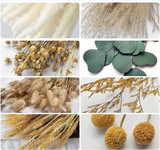Piękny Bukiet złożony z 8 rodzajów traw pampasowych i suszonych kwiatów - łącznie 57 gałązek premium.