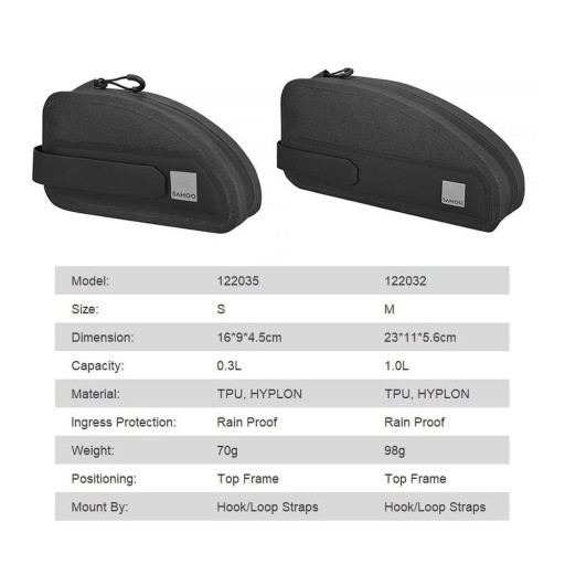 CECHY PRODUKTU Torba rowerowa na ramę rowerową z zamkiem 0,3L SAHOO 122035.