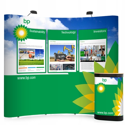 ścianka reklamowa POP UP z panelami graficznymi i oświetleniem to jeden z najnowocześniejszych i najbardziej uniwersalnych wystawienniczych systemów reklamowych, stworzony z myślą o potrzebach współczesnego biznesu. Łukowa budowa zapewnia efektowną głębię i tworzy unikalną atmosferę podczas spotkań z kontrahentami.