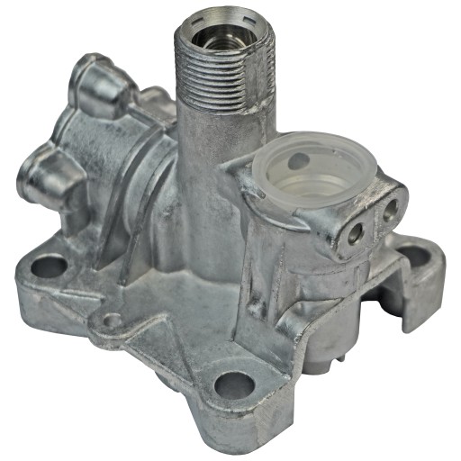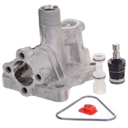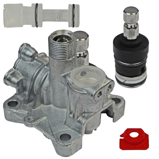 Częstym uszkodzeniem korpusu głowicy jest wewnętrzne lub zewnętrzne pęknięcie z powodu zbyt długiego jednorazowego użytkowania urządzenia lub narażenia myjki na działanie niskich temperatur (mrozu). Objawy to słabe ciśnienie robocze lub próba wyrównania ciśnienia przez samoczynne włączanie<->wyłączanie myjki (dobijanie). Korpus pompy jest fabrycznie wyposażony w zawór sterujący, oraz inżektor chemii.