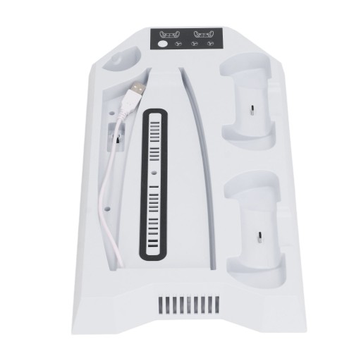 Cecha: 1. Montaż: Zaprojektowany ze stojakiem chłodzącym i stacją ładującą dla PS5 Slim i PS5, skutecznie obniżając temperaturę pracy konsoli, aby utrzymać stabilną i płynną rozgrywkę.