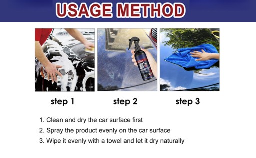 【无水清洗】只需用喷涂剂喷洒汽车油漆,接触后立即消除污垢、污垢、鸟粪、虫子、泥土、灰尘、油脂和顽固污渍,节省时间和金钱。不再有繁琐的洗车。
