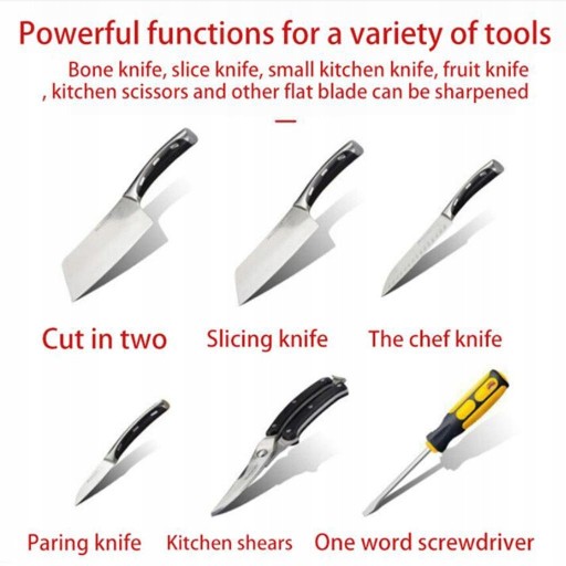 Wielofunkcyjny - Profesjonalny 2-stopniowy system ostrzenia do surowego materiału i doskonale zaspokaja Twoje potrzeby w zakresie ostrzenia. Ponadto szczelina na nożyczki i szczelina na śrubokręt płaski umożliwia ostrzenie nożyczek i śrubokręta płaskiego.