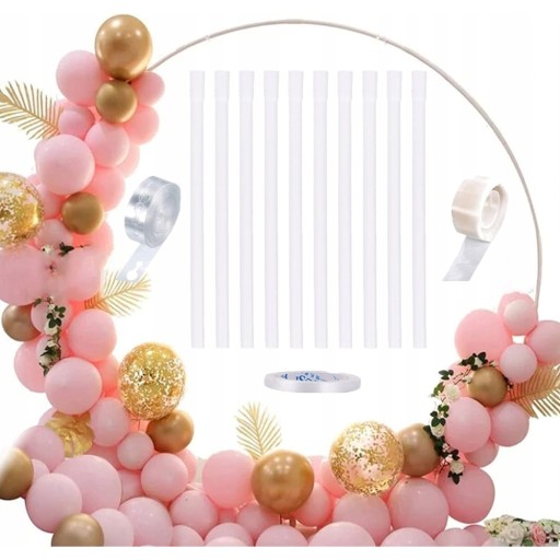 łatwy montaż i demontaż. Wszystko, co musisz zrobić, to połączyć ze sobą pręty i owinąć grupę balonów wokół drążka. Dzięki niemu można wykonać pierścień balonowy o średnicy 150 cm!(Pierścień balonowy nie zawiera podstawy.)