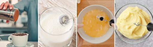 PROFESJONALNE NARZĘDZIE KUCHENNE I BARISTY: Dzięki 3 wszechstronnym trzepaczkom, spieniacz do mleka jest jednym z najlepszych akcesoriów kuchennych do przygotowania idealnej pianki mlecznej do porannej i popołudniowej kawy, a także pomaga uzyskać gładką konsystencję ciasta i puszystą bitą śmietanę w 5 minut.
