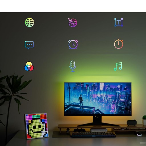 Idealny wyświetlacz Pixel Art 16x16: Wyświetlacz LED Pixel Art jest wyposażony w wyświetlacz LED Pixel Art o wysokiej rozdzielczości 16x16. Posiada 16 milionów kolorów oświetlenia RGB. Można go stosować w paskach świetlnych RGB, akcesoriach do stołów do gier, cyfrowych budzikach i innych scenariuszach.