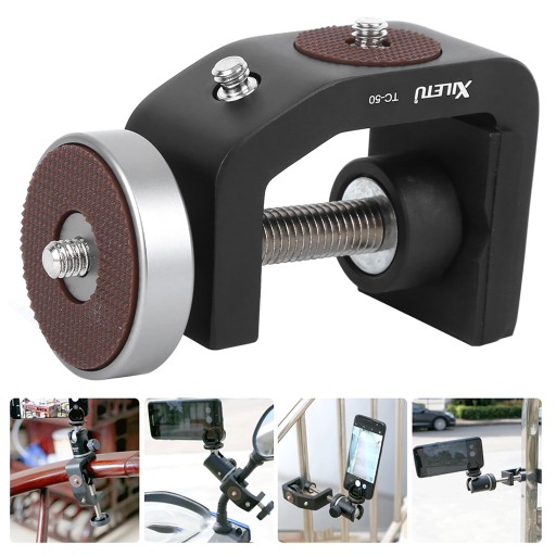 XILETU TC-50 Czarny stop aluminium Uniwersalny interfejs śrubowy 1/4 cala C Zacisk fotograficzny Stabilny klips do sprzętu fotograficznego
