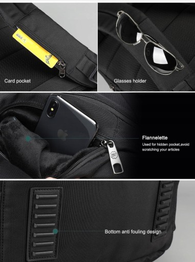Plecak posiada bardzo miękką komorę, która ochroni laptopa, nawet w przypadku upuszczenia plecaka lub uderzenia nim o coś. Komora jest zapinana na zamek. Ponad to, plecak jest bardzo pojemny, a wiele kieszonek sprawia, że można przenosić w nim wszystko czego potrzebujemy.