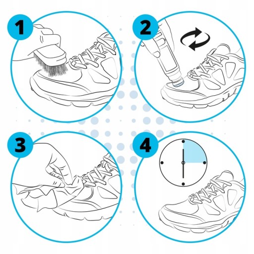 - Kolistymi ruchami wyczyścić buty. Dla lepszego efektu można do czyszczenia użyć szczoteczki do paznokci.