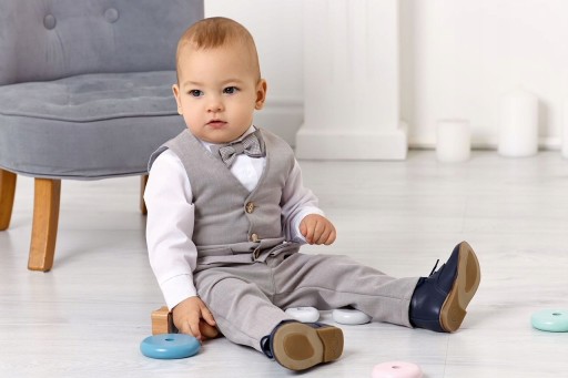 Asortyment: Modny garnitur okazjonalny dla chłopca uszyty z najwyższą starannością z najwyższej jakości wysokogatunkowych materiałów.